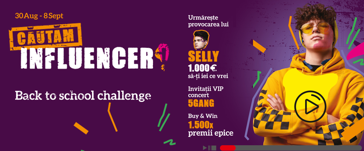 Cel mai fresh influencer își face intrare în stil mare, Back to school. Punem la bătaie 1000 euro pentru video-ul cel mai share-uit și like-uit. În plus, influencer-ul cel mai urmărit se va întâlni personal cu Selly și va fi invitat special la concertul 5Gang din 22 octombrie.