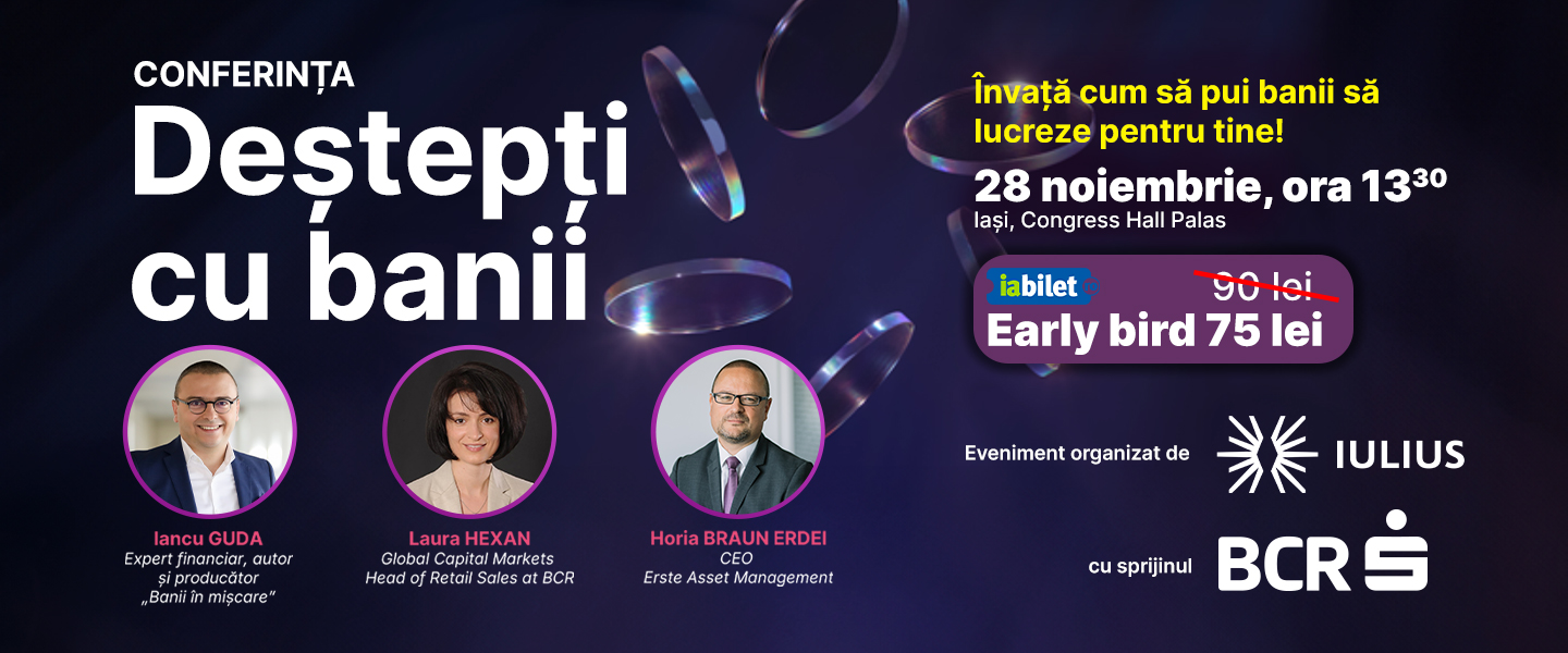 Atunci vino la conferinta "Deștepti cu banii", care va avea loc pe 28 noiembrie 2023, ora 13:30, la Congress Hall Palas