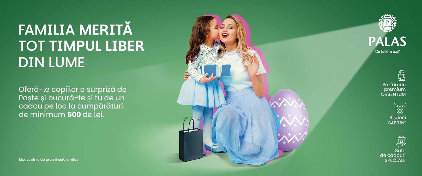 La Palas, primăvara prinde viață cu experiențe speciale și momente petrecute alături de cei dragi. Atmosfera vibrantă a sărbătorilor de Paște se simte la fiecare pas, iar cumpărăturile devin mai mult decât o rutină – devin o bucurie împărtășită în familie.