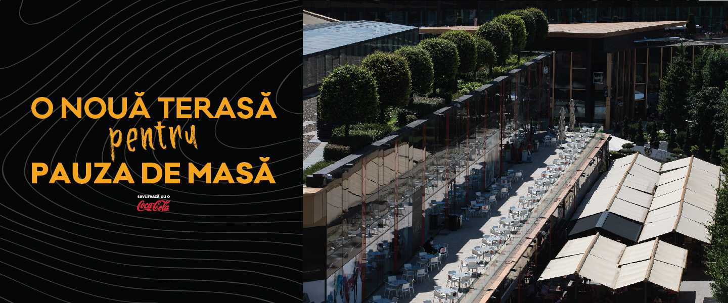 Spațiul amenajat în aer liber oferă o varietate culinară de pe întreg mapamondul prin intermediul locațiilor cu specific internațional. Cu peste 30 de mese și cu o capacitate de peste 140 de locuri disponibile, noua terasa este locul unde îți poți petrece timpul liber împreună cu familia, prietenii sau colegii. Preparatele sunt achiziționate din interior, în regim to go, și pot fi savurate pe terasă.