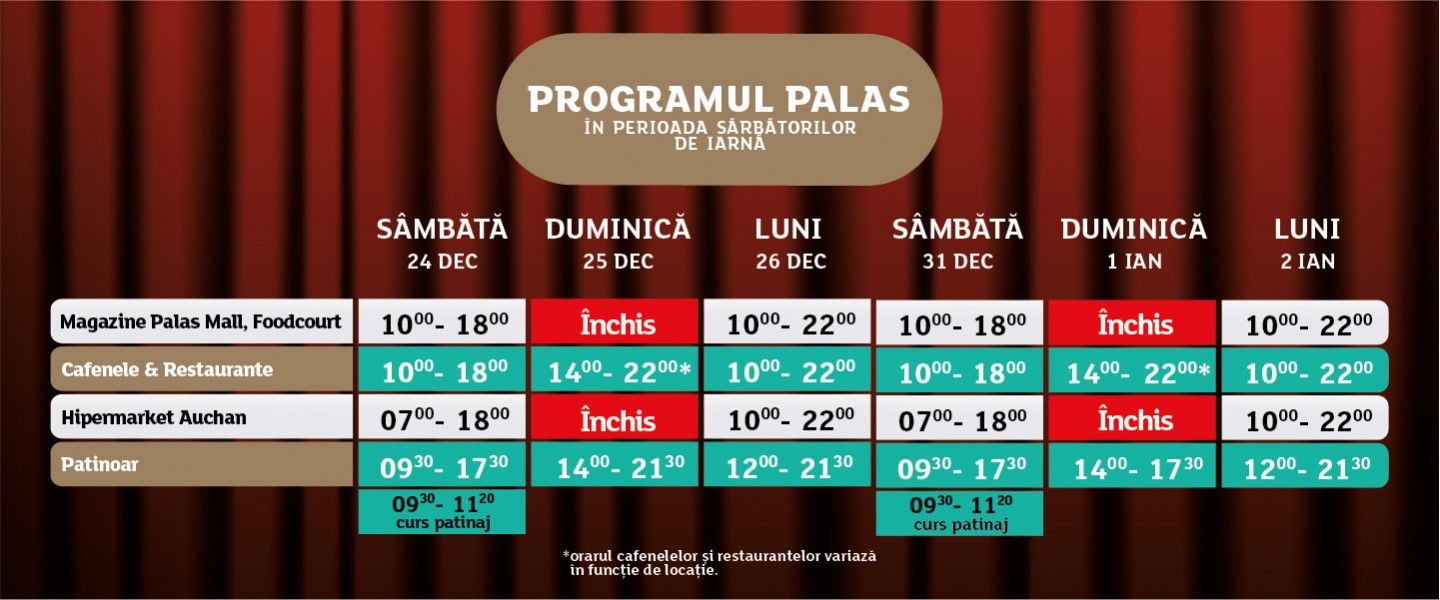Programul cafenelelor din Ansamblul Palas pe 25.12.22 și 1.01.2023