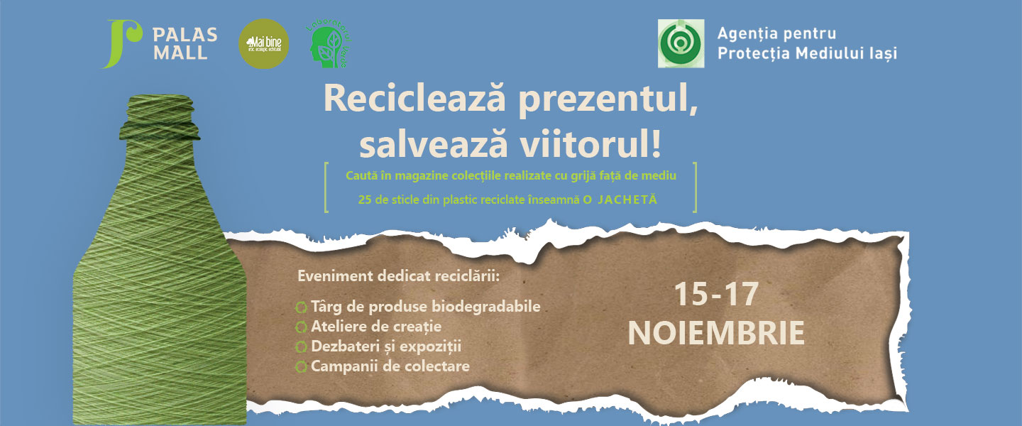 În perioada 15-17 noiembrie 2019, Palas Mall impreună cu Agenția de Protecția Mediului Iași vor organiza evenimentul “Reciclează prezentul, salvează viitorul! - Eveniment Zero Deșeuri”. Astfel, dorim să ne aducem contribuția la trecerea către o economie circulară. În practică, aceasta se traduce prin promovarea de modele de producție și consum care implică reducerea la minimum a deșeurilor prin partajare, reutilizare, reparare, renovare și reciclare a materialelor și produselor existente cât mai mult posibil.