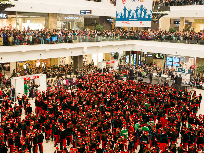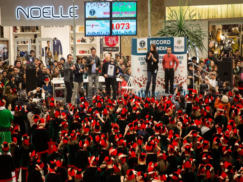 Pentru al doilea an consecutiv, ansamblul urbanistic Palas a adus Iaşului un nou titlu GUINNESS WORLD RECORDS®. Duminică seara, în Atriumul Palas Mall, 1.073 de persoane costumate în elfi au stabilit un nou record mondial la categoria „Cea mai mare adunare de oameni îmbrăcaţi în spiriduşii lui Moş Crăciun”. Astfel, s-a doborât recordul anterior, deţinut de Ammanford Town Centre din Ammanford, Marea Britanie, unde s-au reunit 762 de spiriduşi, pe 17 noiembrie 2012.