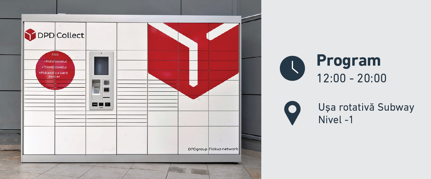 DPD Collect vă stă la dispoziția cu dulapuri securizate pentru ridicarea şi expedierea coletelor, care pot fi ridicate oricând aveți disponibilitate, în intervalul orar 12.00 - 20.00.