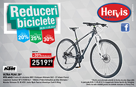 Acum la Hervis Sports ai reducere de pana la -30% la biciclete. De exemplu: mountainbike KTM de 29 inci la doar 2519.99 lei. Numai in perioada 8-11 mai.