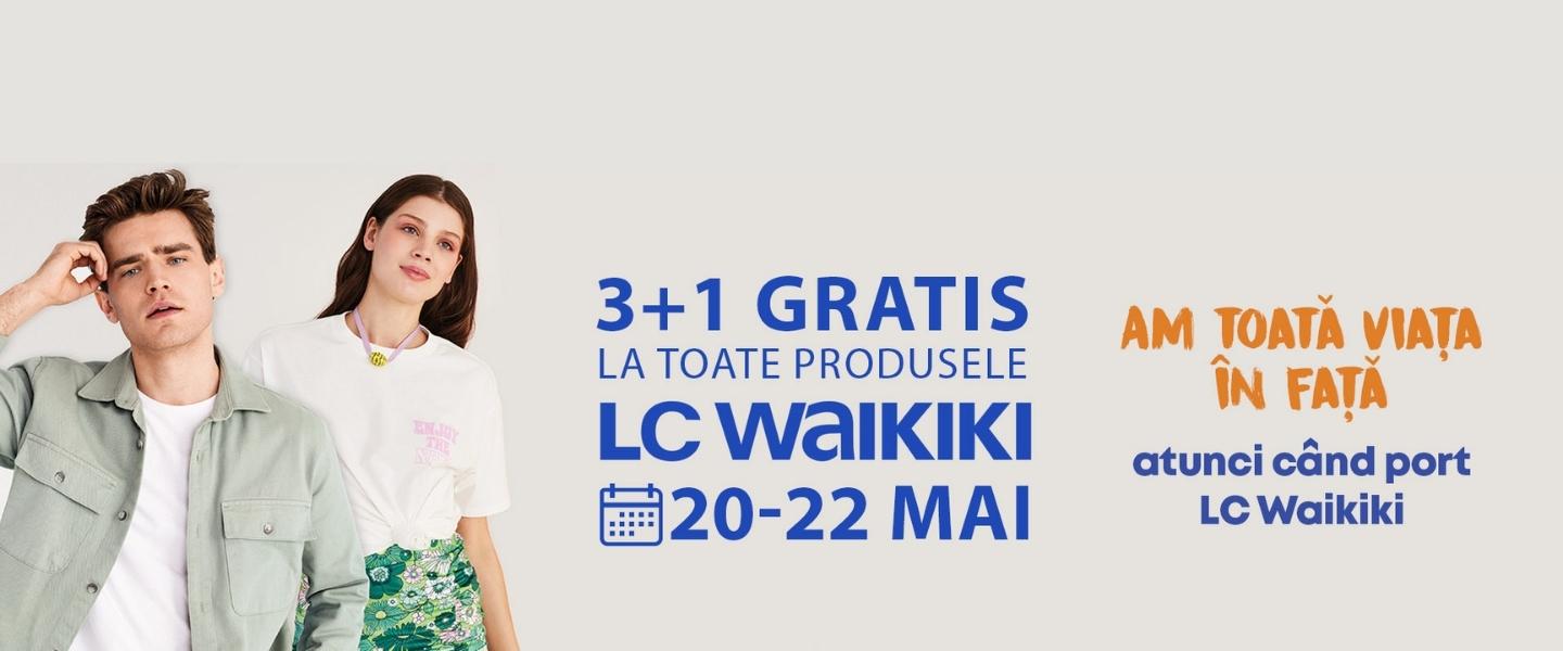 La LC Waikiki de vineri, 20 mai pana duminica 22 mai ai parte de 3+1 gratis la toate produsele.