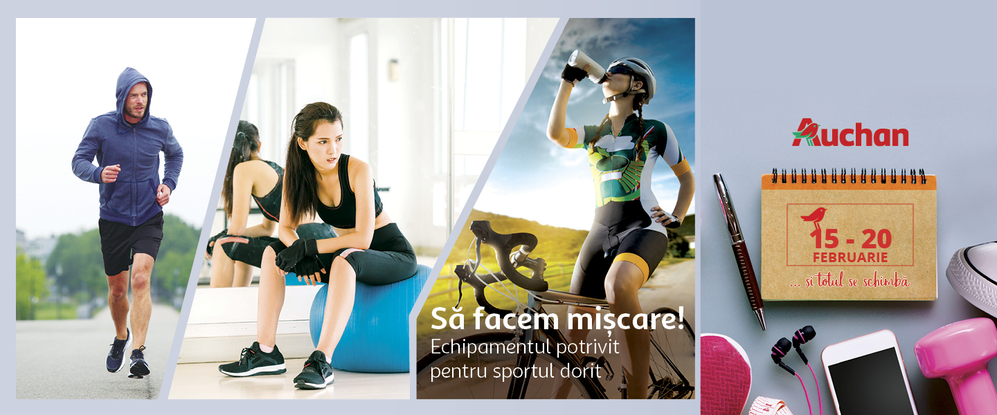 In perioada 15 - 20 februarie, te asteptam in hipermarketurile noastre cu o gama variata de articole sportive pentru a -ti sustine dorinta de miscare si recuperare fizică . Vei regasi in oferta noastra o gama larga echipamente si accesorii specifice de baza, pentru sustinerea oricarui tip de efort fizic, indiferent de sportul practicat, precum si produse alimentare si energizante care te vor ajuta sa iti duci la bun sfarsit programul de antrenament. Din oferta nu lipsesc bicicletele si trotinetele, special pregatite pentru iubitorii de natura si de sport in aer liber.Nici surprizele și activitățile sportive nu vor lipsi.Vă așteptăm să ne echipam, pregătim si antrenam împreună!