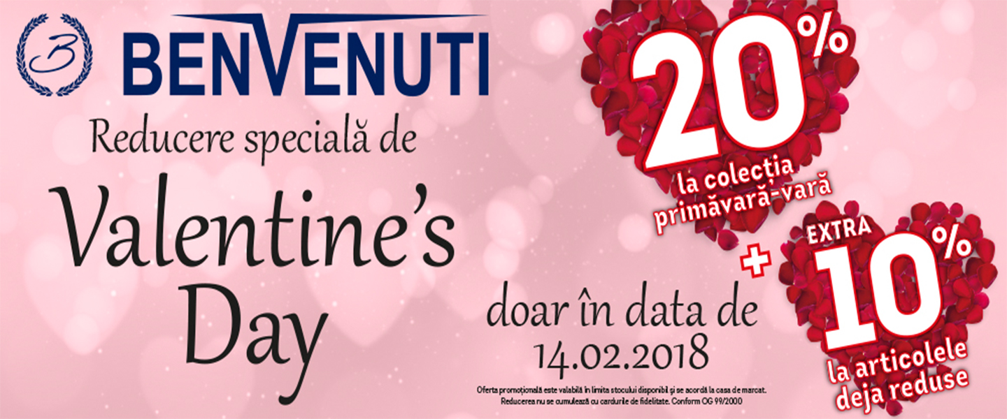 - 20% reducere la produsele din colectia de PRIMAVARA-VARA 2018 doar in data de 14 FEBRUARIE.