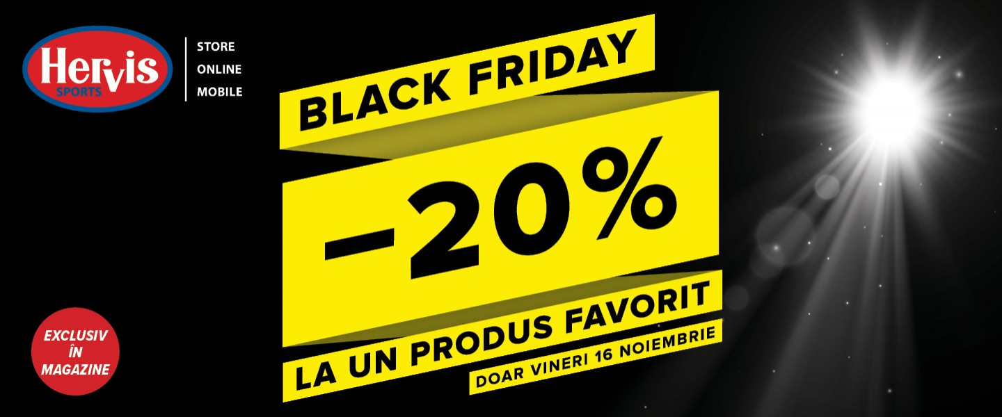 Black Friday la Hervis! Exclusiv in magazinele Hervis ai 20% reducere la produsul favorit! Doar vineri, 16 noiembrie!