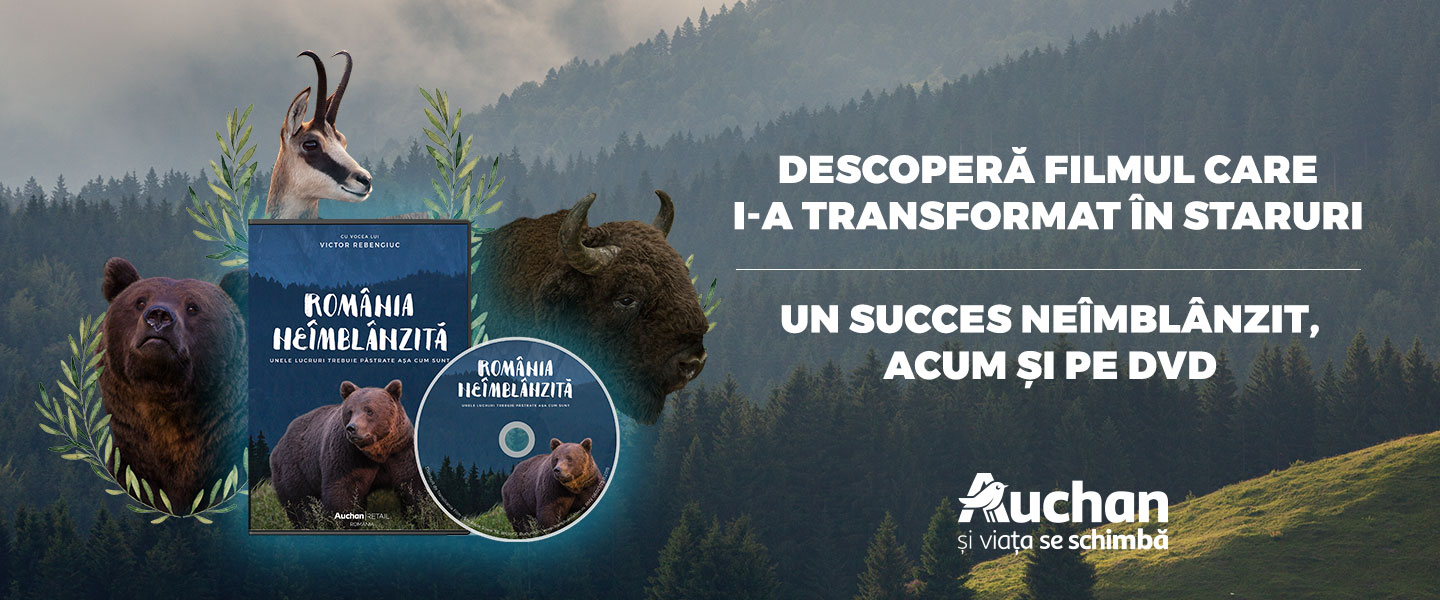 Producția unică „România neîmblânzită” dezvăluie frumusețea sălbatică a României, frumusețea nealterată, neprelucrată, magică, dar fragilă, în același timp. Descoperă pe DVD darul oferit românilor, cu ocazia centenarului Marii Uniri, din partea Auchan Retail România, un cadou excelent de oferit celor dragi cu ocazia sărbătorilor de iarnă!