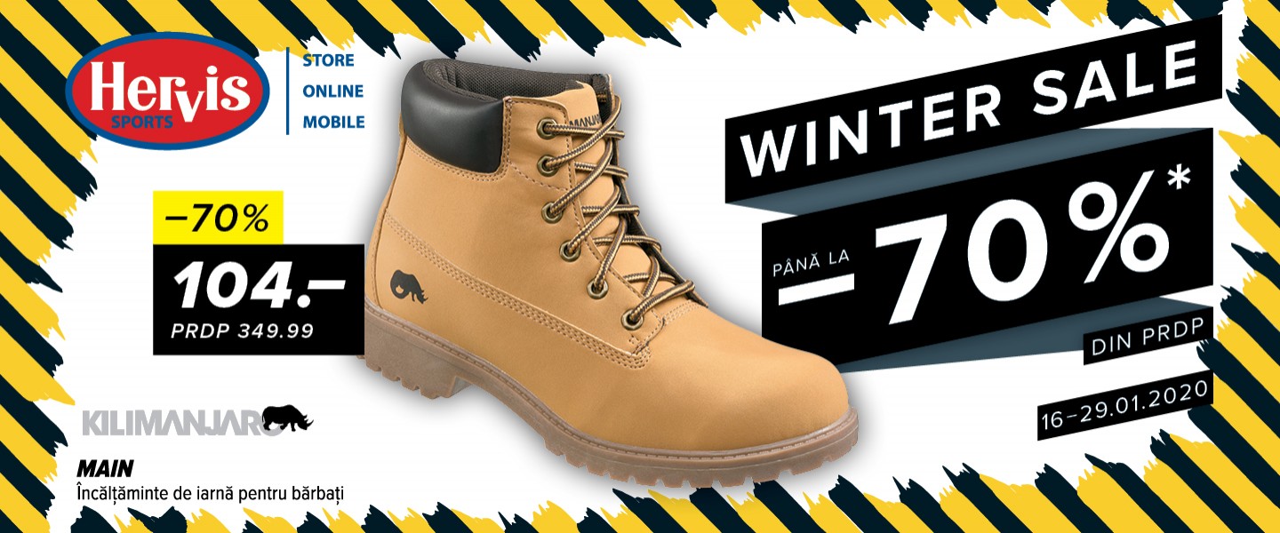 De exemplu: ghete de iarnă pentru bărbați Kilimanjaro Main, de la 349,99 RON la doar 104 RON.
