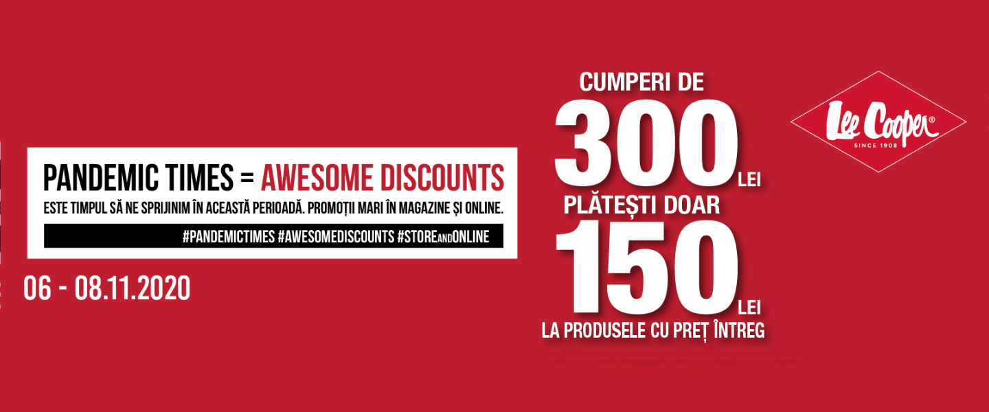 In perioada 06 - 08.11.2020, la Lee Cooper cumperi de 300 lei si platesti doar 150.