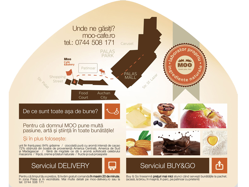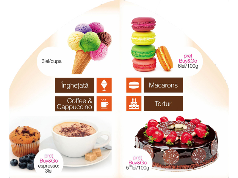 Cauta acum pliantul care iti ofera -15% la toate comenzile de patiserie si cofetarie peste 50 lei! Il gasesti la Centrele Info si la locatia din zona Foodcourt.