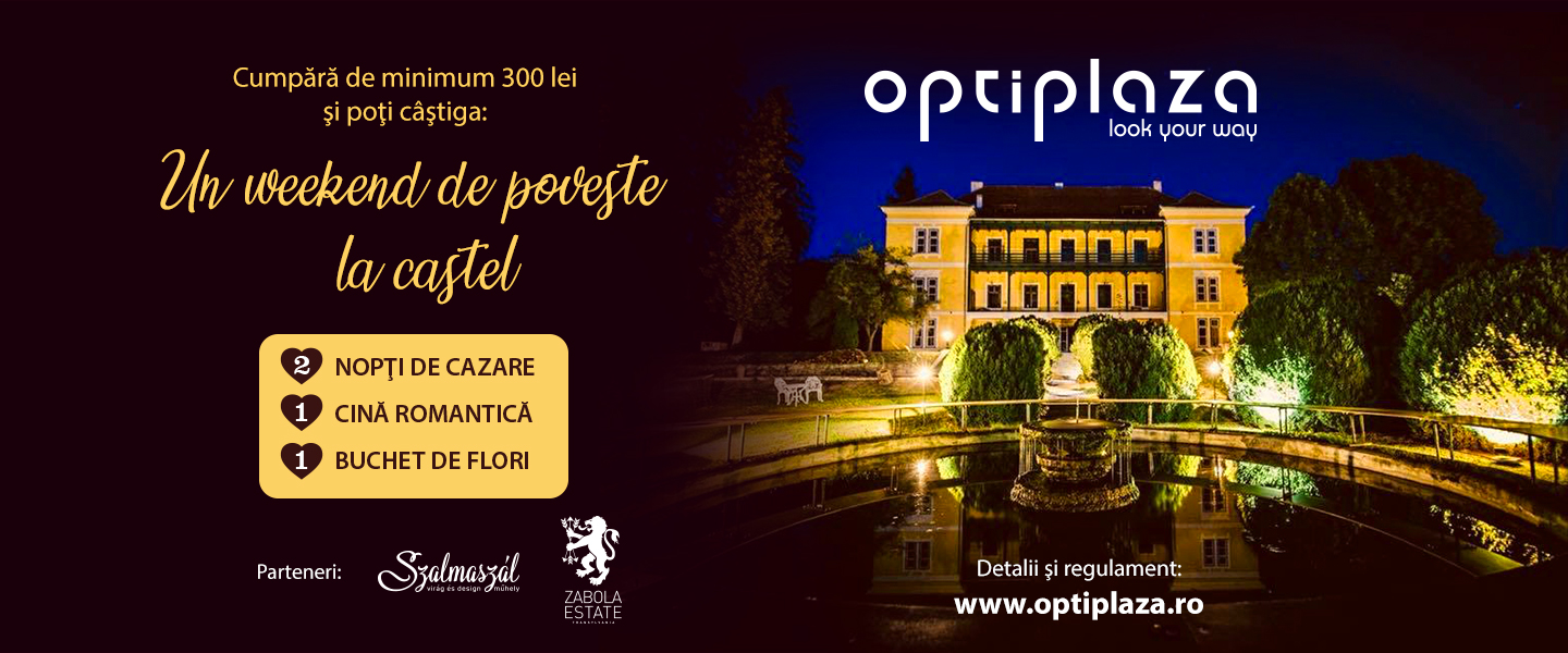Cumpără de minimum 300 de lei în perioada 1 – 24 februarie 2020 și poți câștiga un weekend la castel! Detaliile și regulamentul pe www.optiplaza.ro.