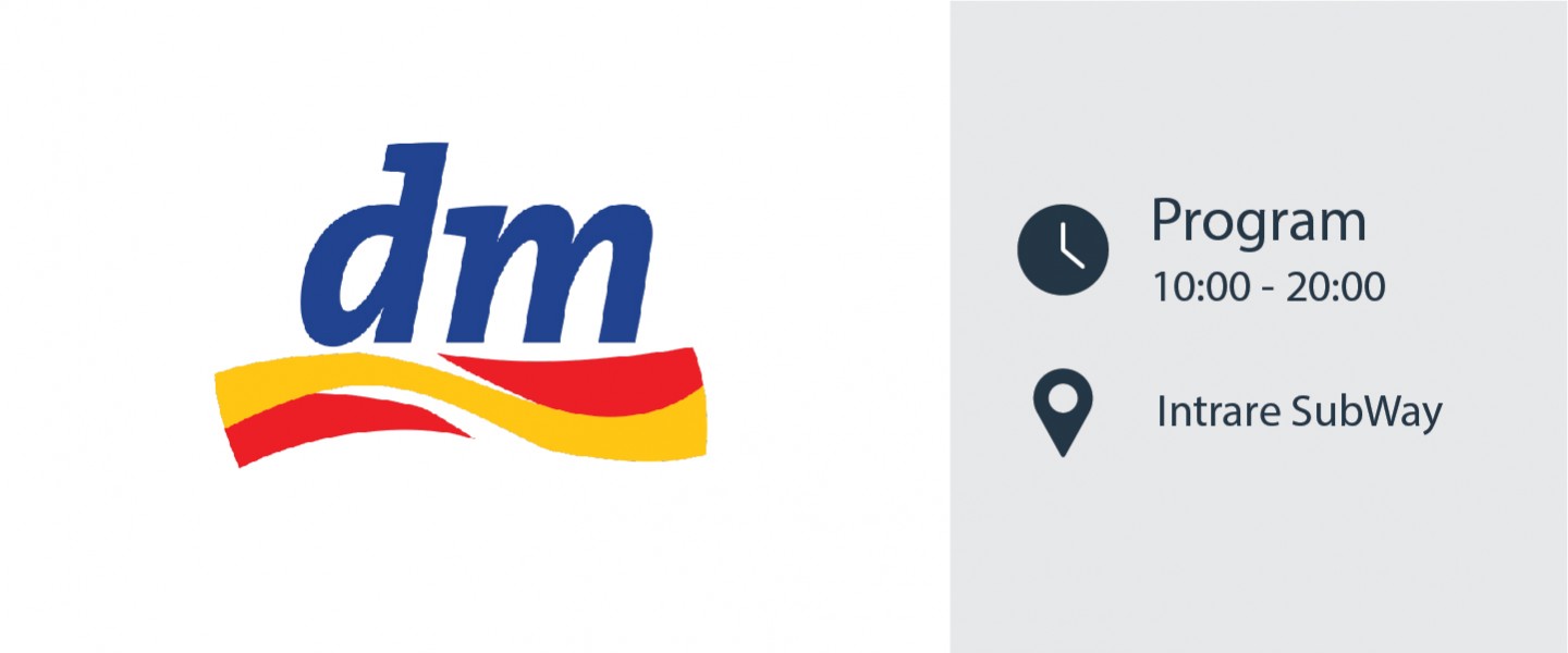 Programul magazinul dm este 10.00 - 20.00, iar intrarea se va face pe la Subway.