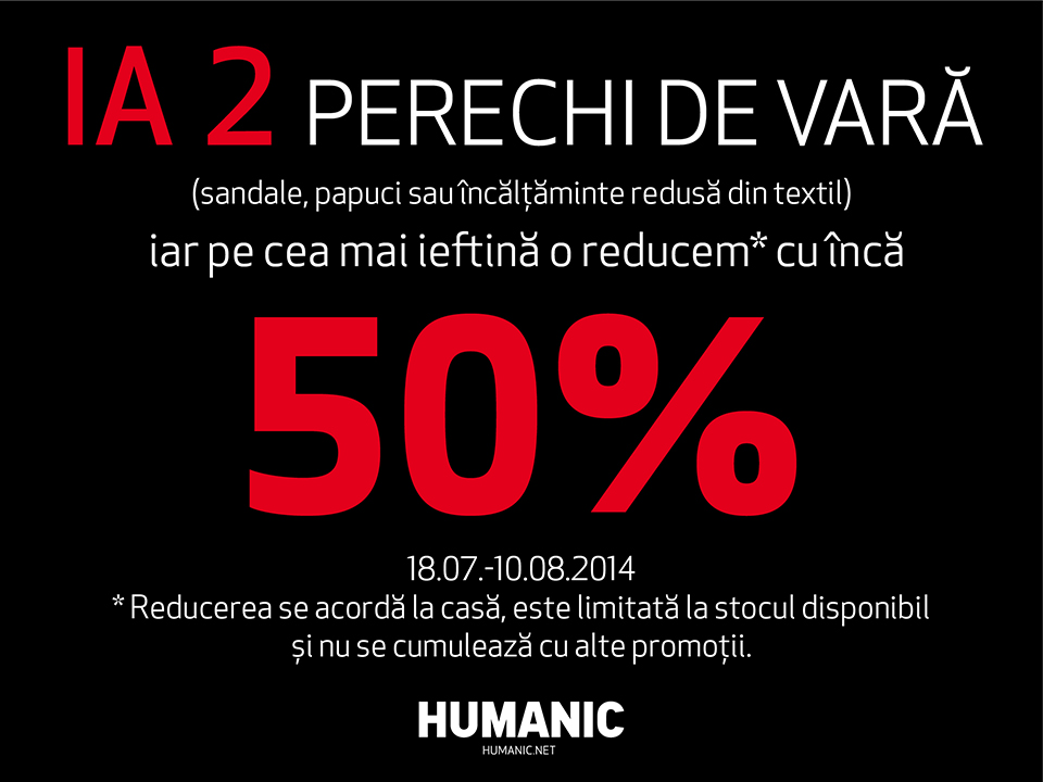 Acuma la Humanic ai sansa sa reduci o pereche de papuci de vara cu 50%. Trebuie doar sa cumperi 2 perechi.