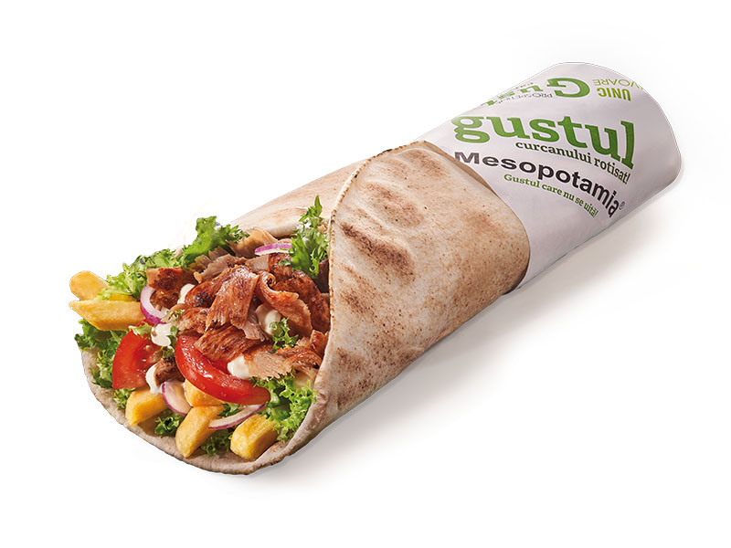 Mesopotamia este singurul restaurant de tip fast food din România ce îmbină gustul curcanului și vițel rotisat într-un amestec unic! Carnea, medaliată cu aur în Europa pe criterii de calitate, are o combinație de condimente ce-i conferă savoare și gustul unic ce-i face pe clienți să revină din nou și din nou.