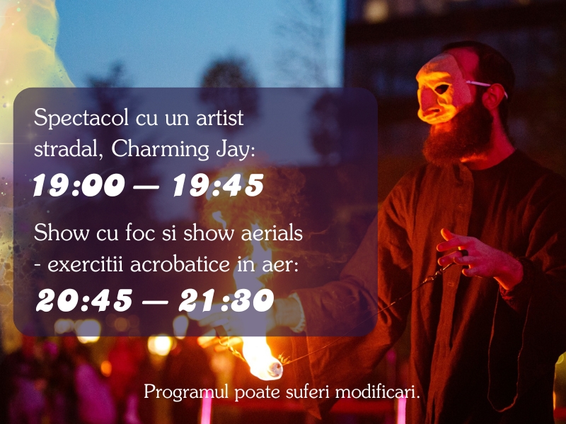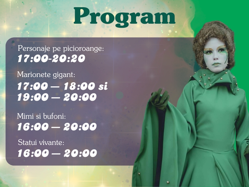 O zi plină de emoție, culoare și inspirație, în care statuile vivante, marionetele gigant, mimii, bufonii, artiștii pe picioroange, show-urile de foc și momentele muzicale transformă parcul Palas într-un univers plin de fantezie și povești în mișcare.
