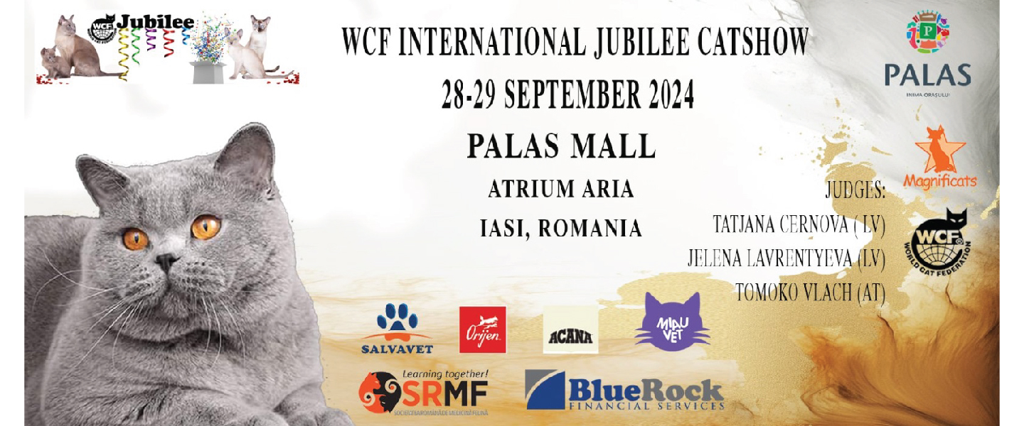 Peste 120 de pisici de rasa din Romania, Ungaria, Moldova Ucraina si Marea Britanie vor fi prezente in cadrul Expozitiei Internationale Feline WCF, organizata de Clubul Felin Magnificats, in zilele de 28 si 29 Septembrie 2024 la Palas, zona Atrium, intre orele 10.00-18:00.
