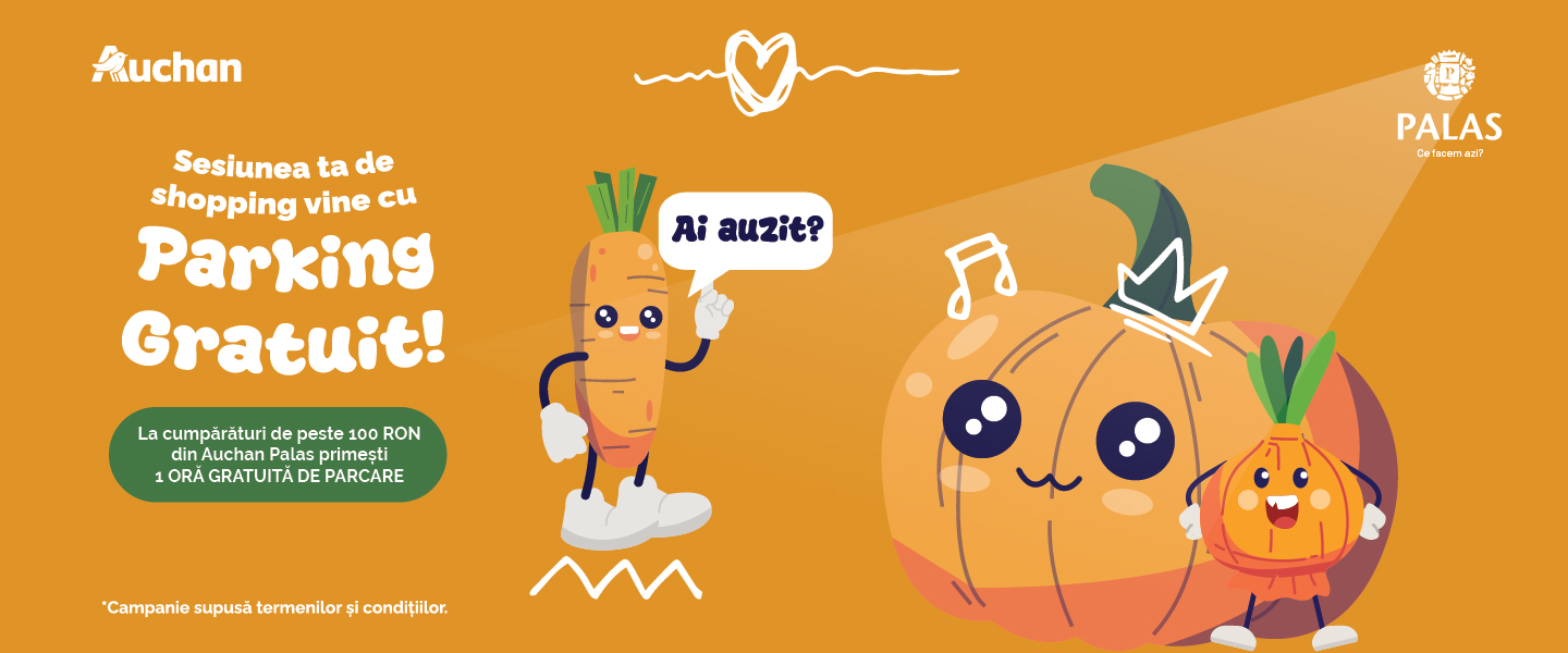 Pentru achiziții de minimum 100 lei, primești o oră de parcare gratuită. Bonul trebuie validat la Centrul Info de la Auchan.