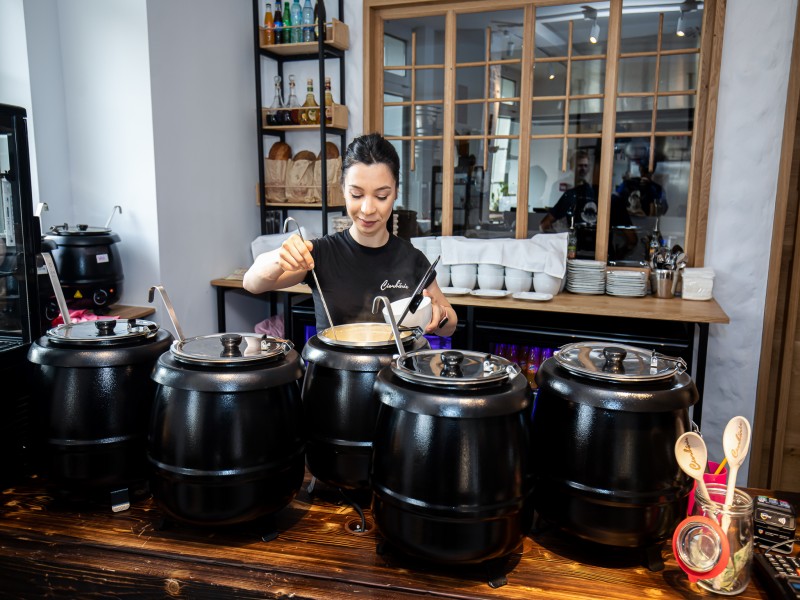 Pe lângă diversitatea de 10-16 tipuri de ciorbe zilnice, în meniu se mai găsesc pateuri și zacuscă de casă, meniuri cu sandwich-uri incluse – pui, pulled pork, halloumi, somon sau pastrami, pâine integrală artizanală bio, cu maia si mix de semințe, mujdei, smântână, deserturi și băuturi.